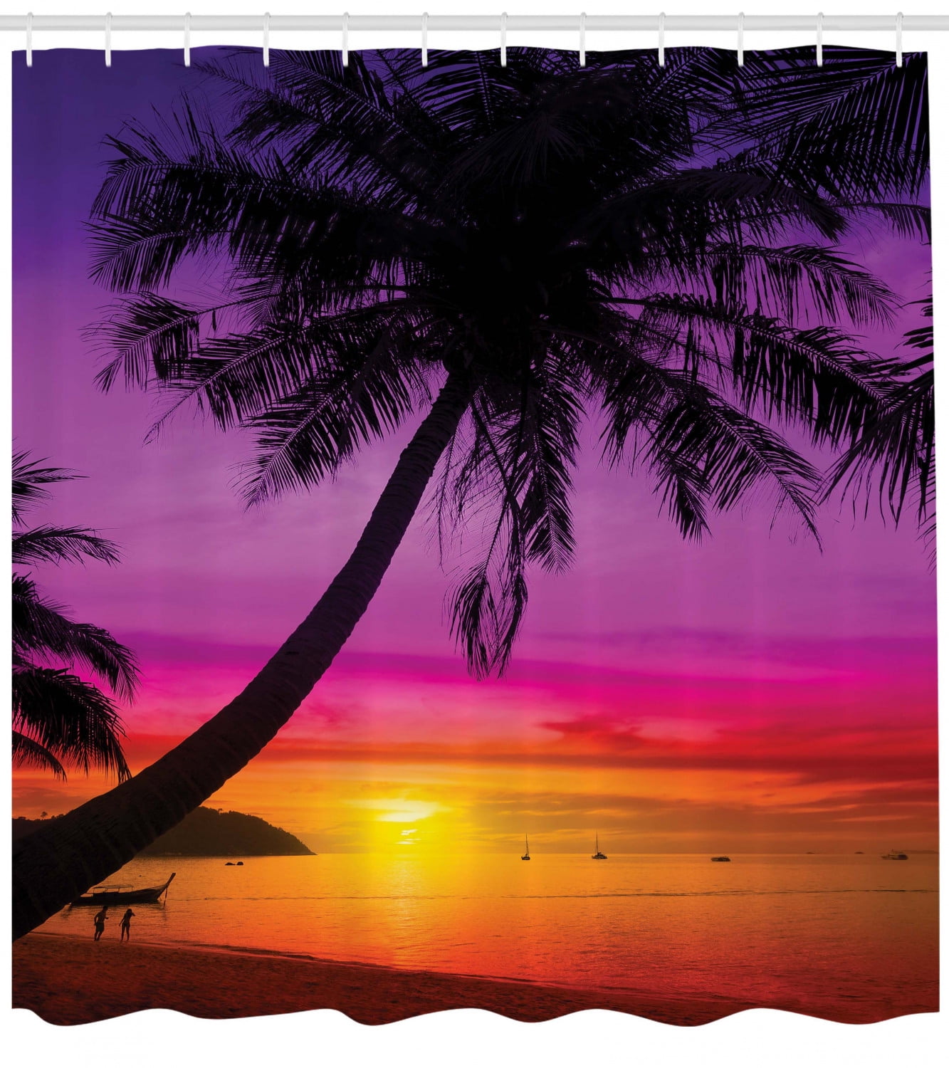 Tropical Shower Curtain Palm Tree Silhouette On Beach At Sunset Summertime Travel Destination Fabric Bathroom Set With Hooks 69w X 75l Inches Long Purple Orange Black By Ambesonne Walmart Com